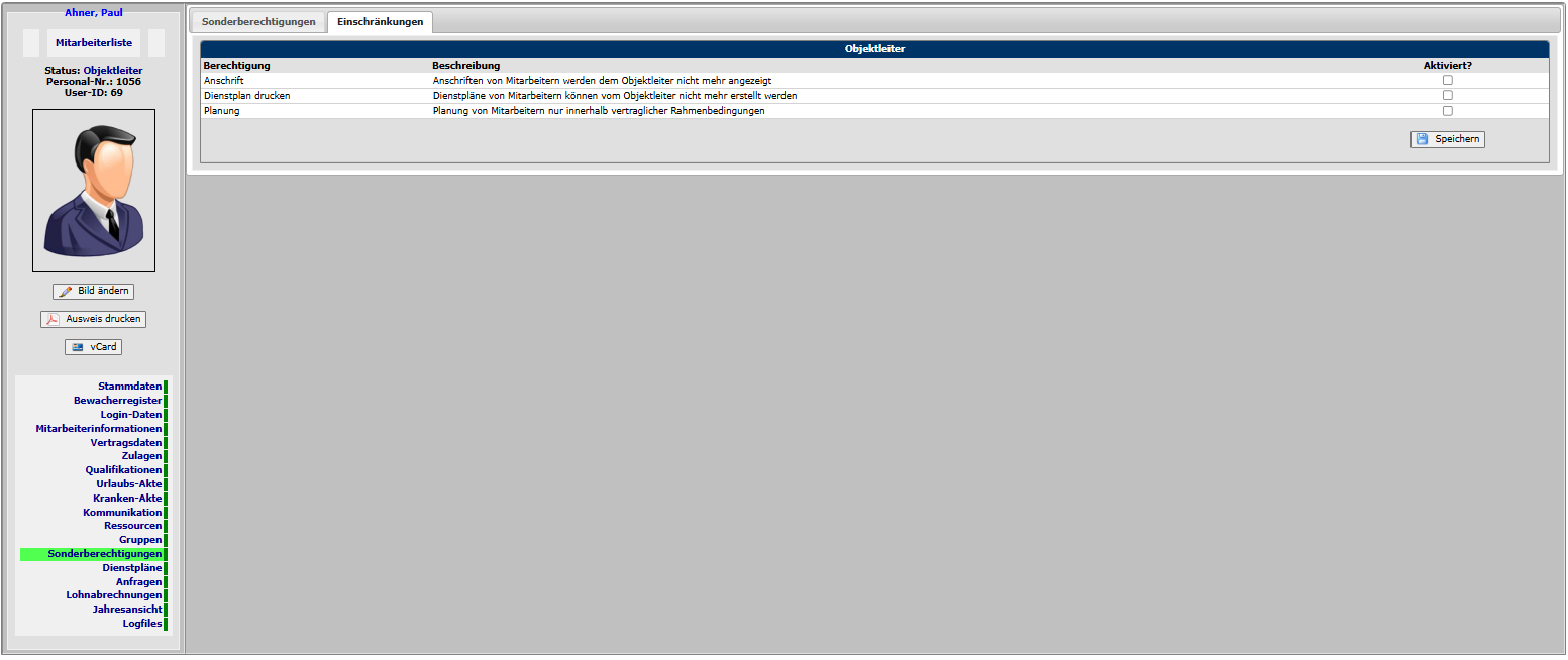 Hier sehen Sie die Sonderberechtigungen der Objektleiter.