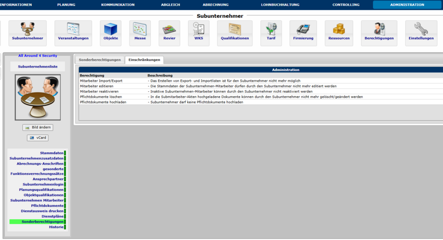 Wenn Sie möchten, können Sie hier den Subunternehmer in seinem Handeln einschränken. Zum Beispiel wenn er bereits hochgeladene