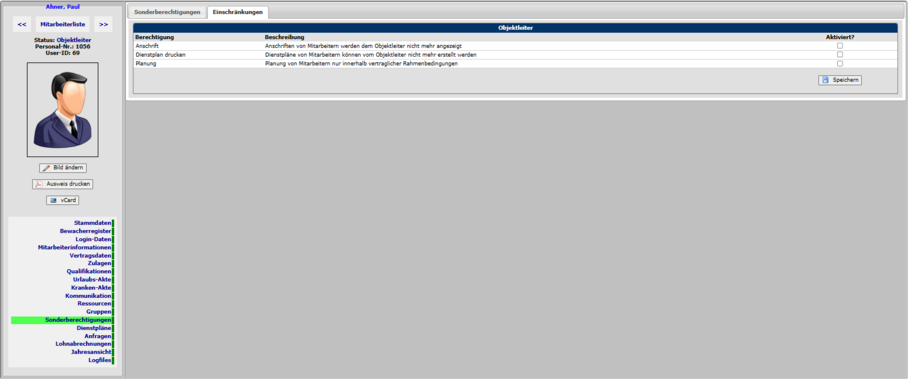 Die Sonderberechtigungen geben dem User erweiterte Berechtigungen im System.